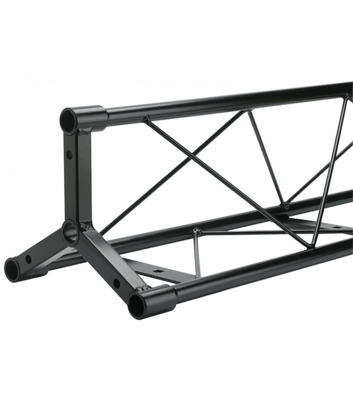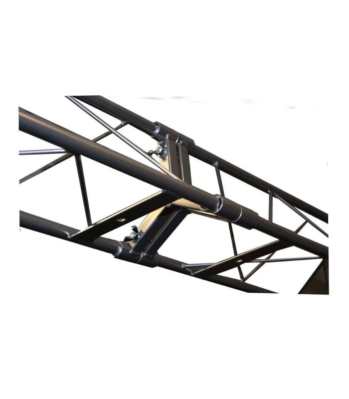 Onze eigen reeks DJ TRUSS / DECO TRUSS in een maatje groter, geen 10, 12 of 15cm maar een 20cm TRIO TRUSS, met een zwarte Poeder coating. Uniek is dat bij onze rechte delen de koppel-busjes reeds vast voorgemoteerd zijn, waardoor montage handiger en sneller verloop.
