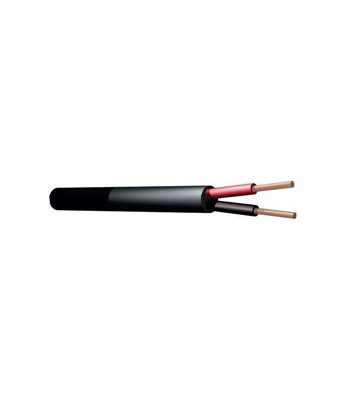 Ronde 2-aderige luidsprekerkabel met sterke, ronde buitenmantel. Geleverd op haspel van 100m. Polariteitsaanduiding door gekleurde isolatie van de binnenaders. Ook geschikt voor 100v installaties.