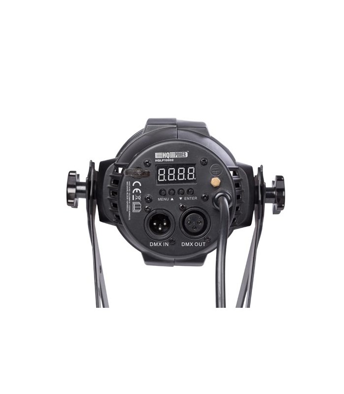 Deze PAR38 heeft DMX-sturing via 2 tot 9 kanalen voor een eenvoudige of geavanceerde controle, instelbaar via LCD-display, alsook master/slave-modus, autonome modus of muziek gestuurd. De PAR kan tevens volledig ingesteld worden, met de meegeleverde IR afstandsbediening.