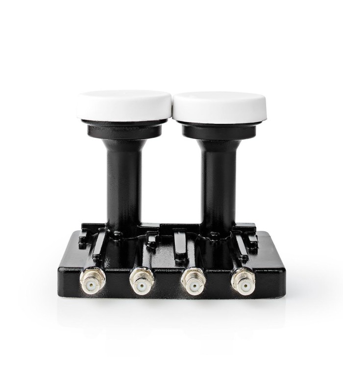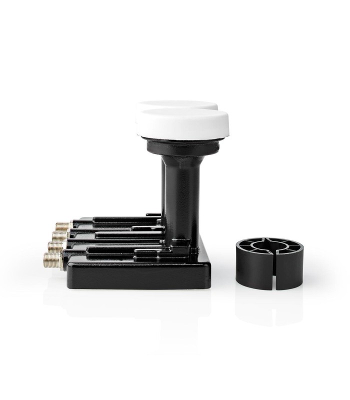 NEDIS PRO DUO Twin LNB voor het aansluiten van vier satelliet-ontvangers of twee twin ontvanger. Verloopring om de LNB in een houder van 40mm te kunnen plaatsen is bijgesloten.