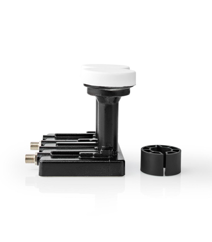 Nedis BLACK Twin LNB voor het aansluiten van twee ontvangers of één twin ontvanger. Verloopring om de LNB in een houder van 40mm te kunnen plaatsen is bijgesloten.