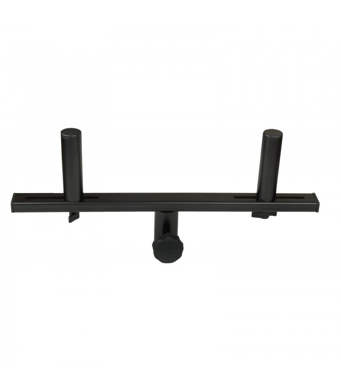 T-Bracket for 2 speakers. Distance between the 2 speaker adapters adaptable from 32 to 51cm.Heavy duty metal construction. For use with speakers up to 2x 20kg. Speaker adapters: D=35mm