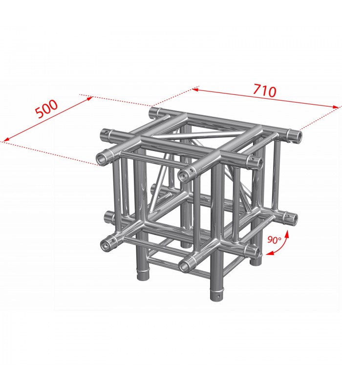 Quatro truss 4-weg hoek van 90° met 1 been naar beneden voor uw constructies. Ideaal voor DJ's, live bands en theaters.