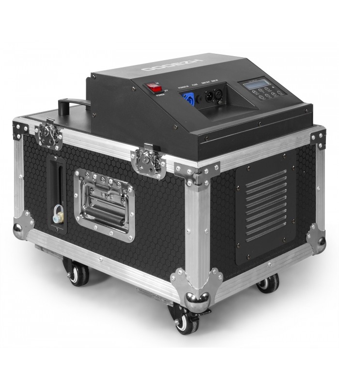De machine is geïntegreerd in een duurzame flightcase (met zwenkwielen) en heeft de capaciteit om een enorme hoeveelheid rook of een fijne langdurige mist te produceren om de locatie in enkele minuten te vullen. Perfect voor het gebruik in theaters, clubs, bij toneelproducties, voor verhuurbedrijven en veel andere industriële toepassingen.