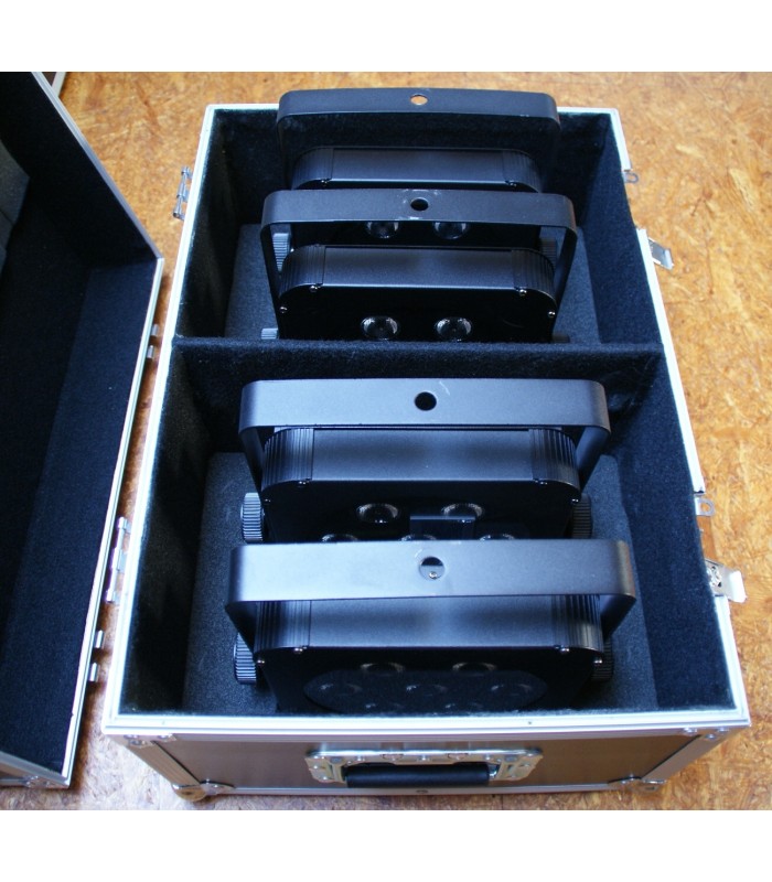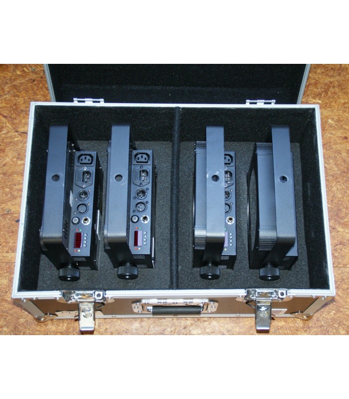 4x Planospot in flightcase. De optie van 2 lichtstatieven is gratis!