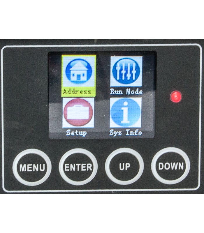Automatische, gemotoriseerde focus, één kleuren schijf met 7 kleuren +open, met rotatie in variabele richting en snelheid. Eén Statische gobo schijf met 8 gobo’s + open, rotatie & shake en dan nog één draaiende gobo schijf, met 6 gobo’s +open, rotatie & shake en dit voor een zeer heldere Witte LED van 180watt.